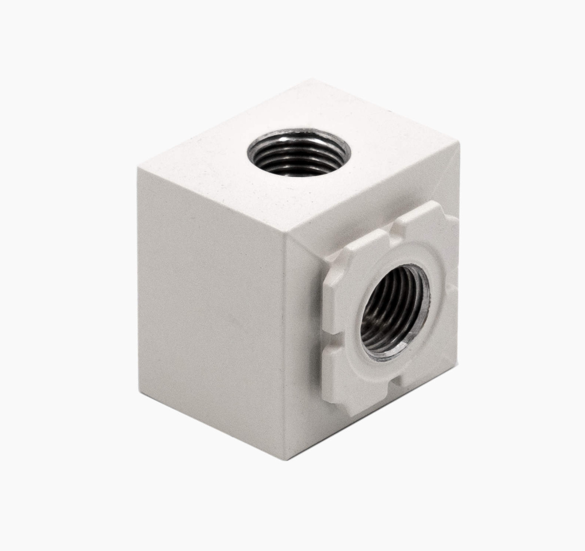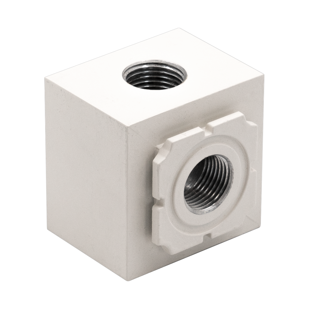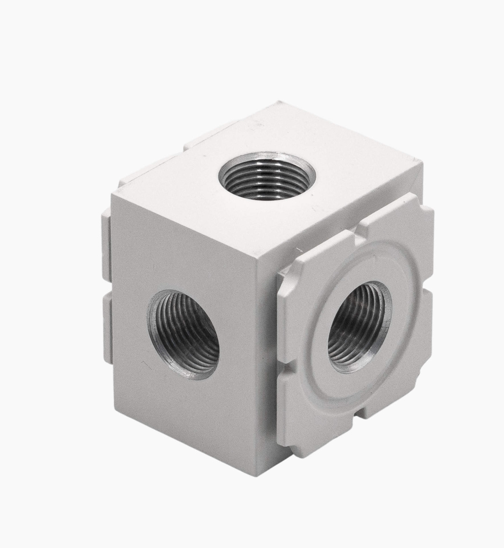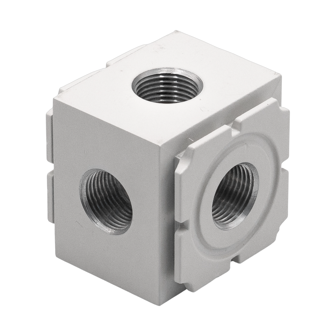 Модули разветвления воздуха служат для перераспределения воздушных потоков на различные модули, отвечающие за изменение параметров воздуха, например, на маслораспылитель, клапан сброса давления или фильтр грубой/тонкой очистки и позволяют к основной пневматической линии подсоединять трубы различного внутреннего диаметра (их количество зависит от количества имеющихся выпусков).